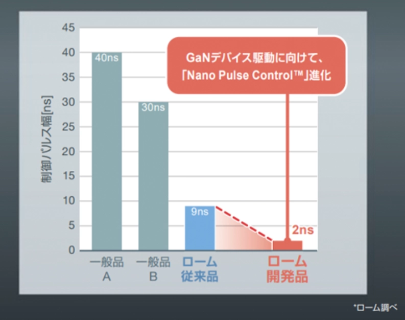 競合品のパルス幅数値が既に<30ns>を達成していたのに対して、ロームは<120ns>・・・!