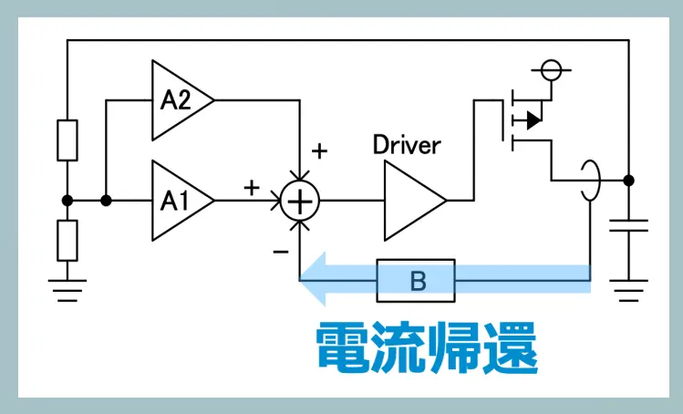 この相反するテーマに挑んだNano Cap™のコア技術は、従来の「出力電圧を検知して調整する」フィードバック制御に加え、「電流による高速な帰還」を取り入れることで高周波帯域での電圧変動を抑えることに成功しました。