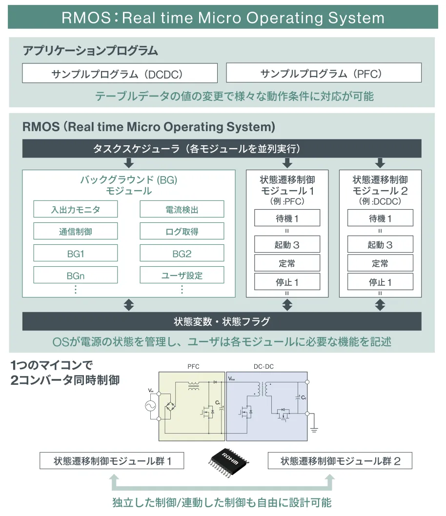 - 「状態遷移制御」を用いたスイッチング電源制御プログラミングに対応(RMOS に状態遷移管理機能を実装)