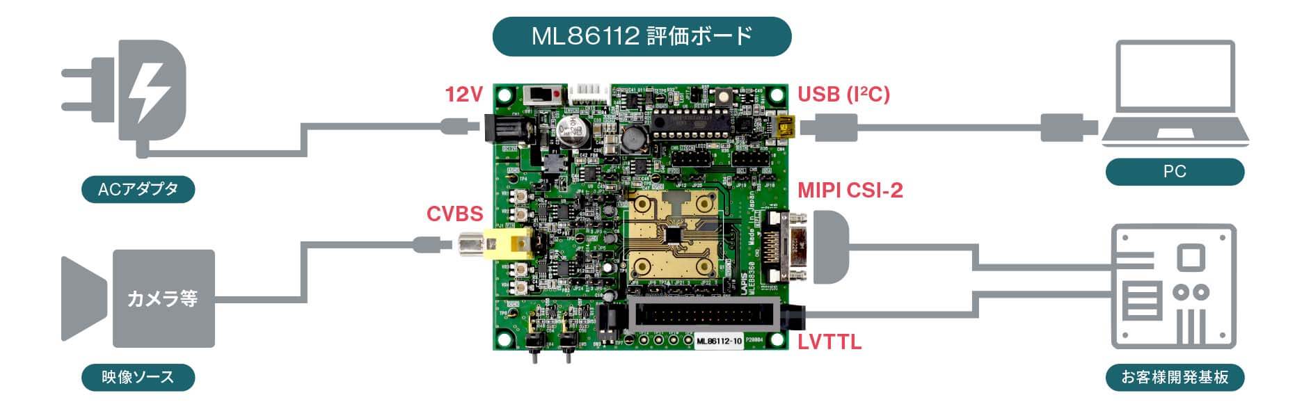 ML86112は2つの信号出力を備え、幅広いSoCへの接続を可能とします。