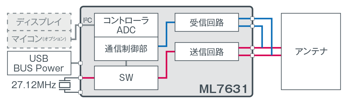 13.56MHz(NFC)ワイヤレス給電LSI「ML7630 / 7631」は、磁界共鳴方式で13.56MHzの磁界を経由して給電します。