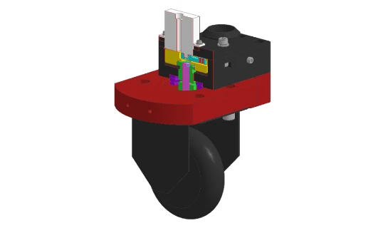 車体重量を支えるため金属化したかったが、R-ム社内での複雑な金属加工は不可能と判断し、樹脂での製作を決断。軸受けと車輪以外の部品はすべて3Dプリンターで製作。充填率や壁面の厚みなどの成形条件は、自宅メイカーたちの経験でカバーしました。