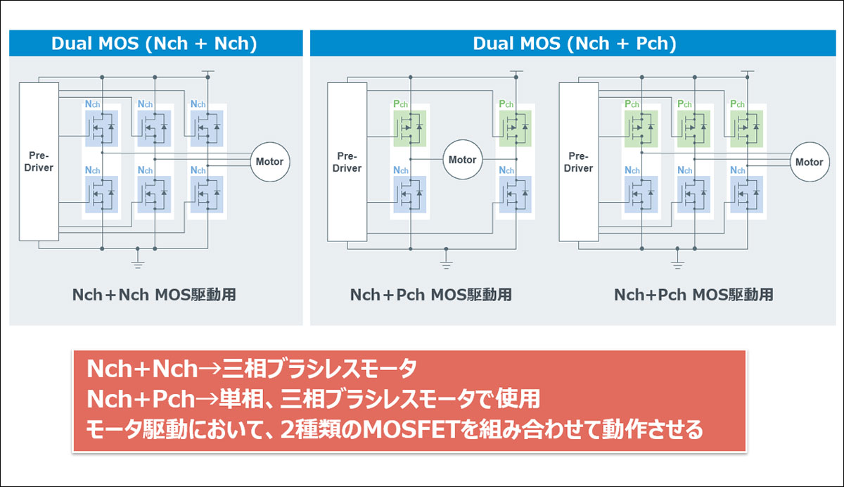 モータ駆動におけるDual MOSFET使用例