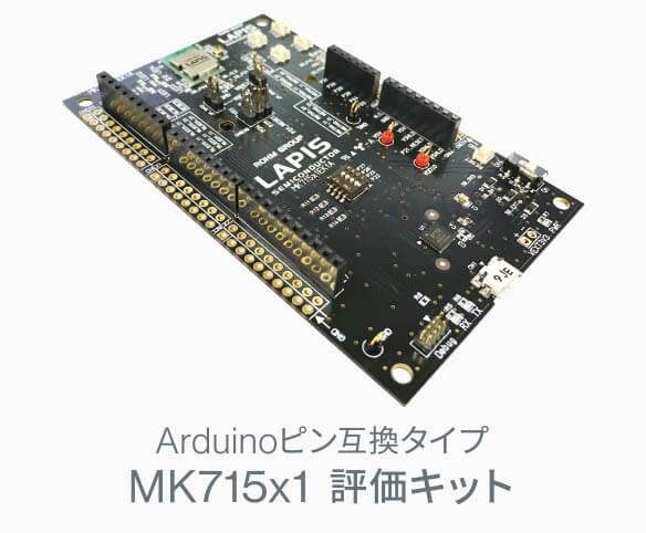 なお、今回新製品のサンプル出荷に合わせて、サンプルソフトウェア書き込み済みでPCに接続するだけで誰でも簡単に評価できる、小型簡易タイプの「MK715x1評価キット Mini」とArduinoピン互換タイプの「MK715x1評価キット」も提供します。これらは、2020年6月からチップワンストップ、コアスタッフオンラインにてインターネット販売を開始しており、1個から購入可能です。また、本評価キットを使用するために必要な各種ドキュメントはラピスセミコンダクタの公式Webサイトからダウンロードすることができます。