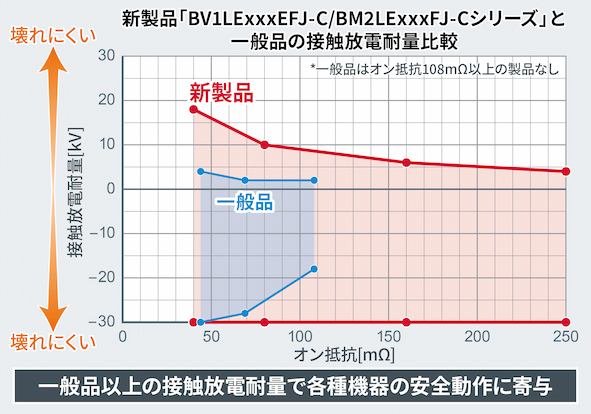 <新製品と一般品の接触放電耐量比較>