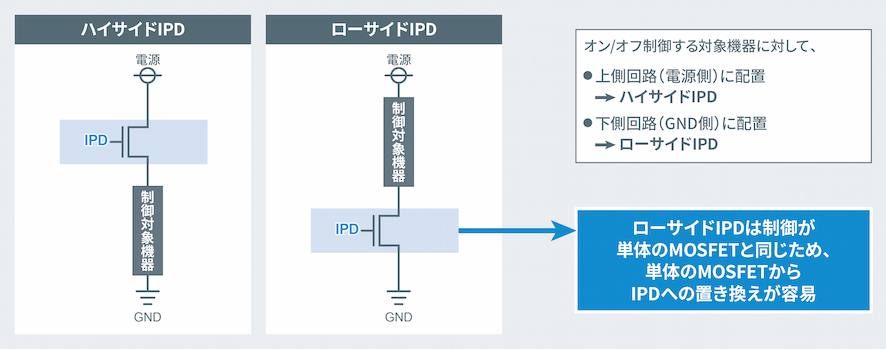 <ハイサイドIPDとローサイドIPDの比較>