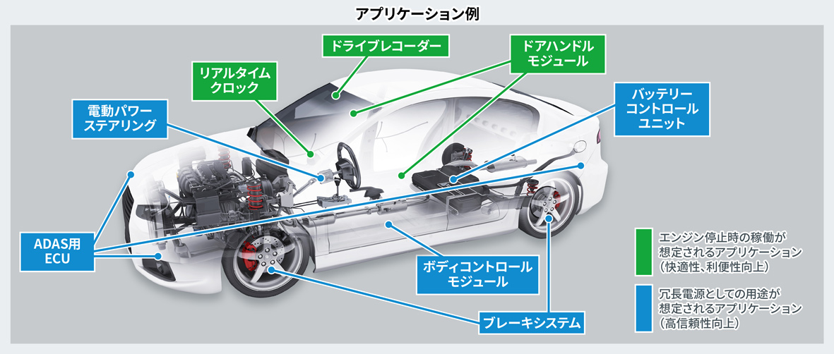 近年、ADAS(先進運転支援システム)の進化等に伴い、これらのアプリケーションに電力を供給する車載電源システムにも高信頼性が求められています。そのため、メインシステムに異常事態が発生した場合にも、アプリケーションのコア機能(サブマイコン)を作動し続けることができる冗長電源を車載電源システムに組み込むことが増加しています。一方、冗長電源は従来のシステムに追加される回路となるため、省スペースかつ低消費である必要があります。ロームは、これまでの電源開発により培ったノウハウや技術の結集により、小型でありながらプライマリ電源として使用できる新製品を開発しました。