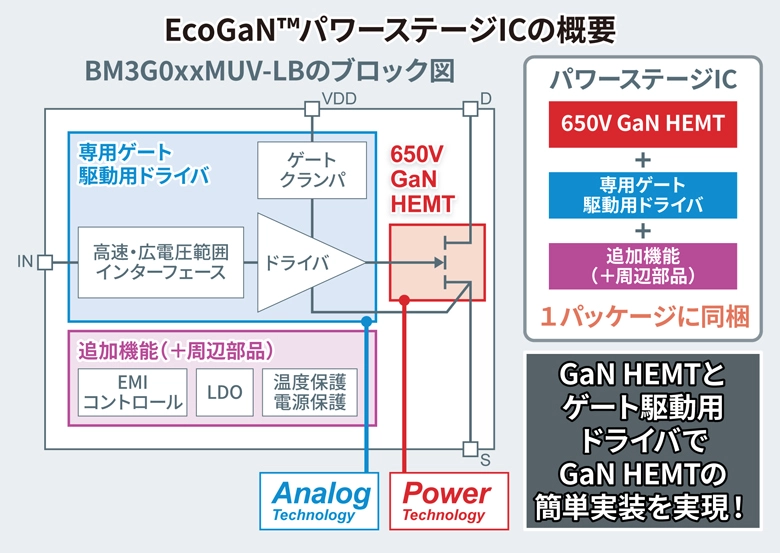 EcoGaN™パワーステージIC「BM3G0xxMUV-LB」を開発