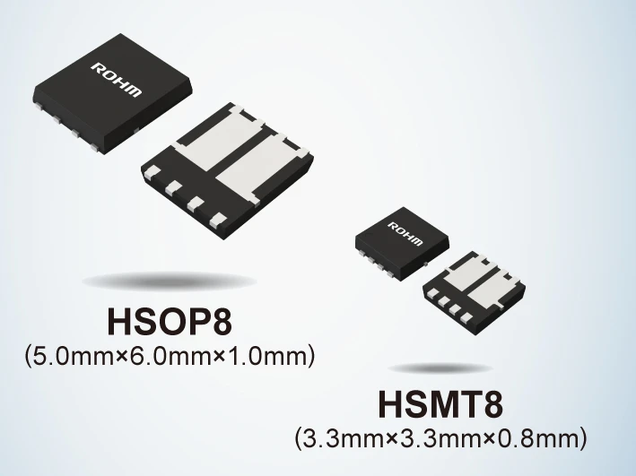 こうした中、ロームは最新プロセスを用いてNch、PchのMOSFETチップを開発し、さらに放熱性に優れた裏面放熱パッケージを採用することで、業界トップの低オン抵抗を実現した新シリーズを開発しました。
