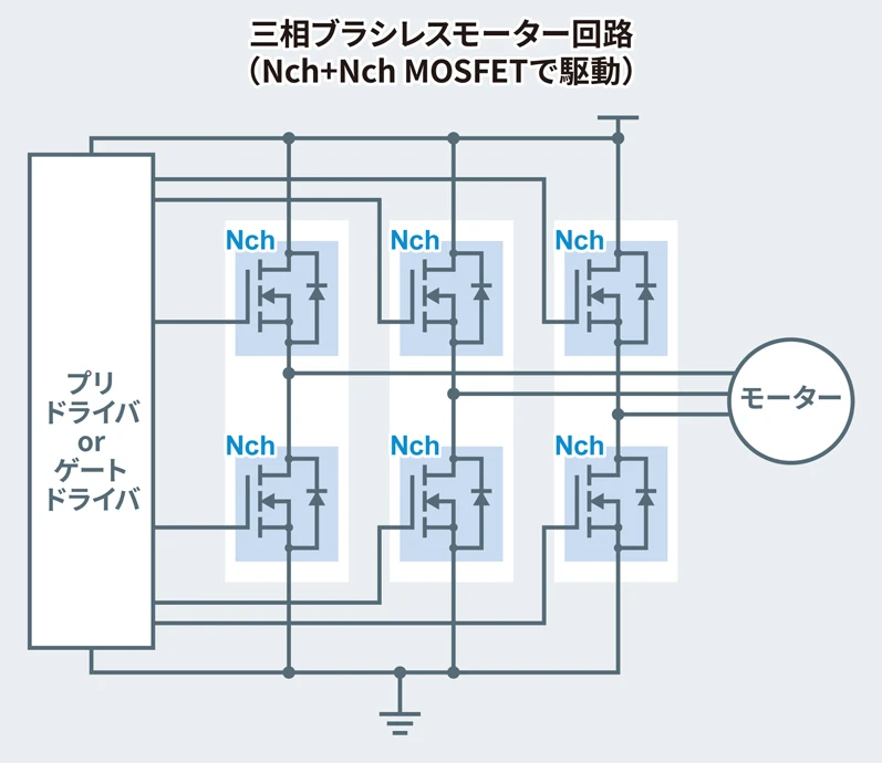 ■HP8KE6(Nch+Nch デュアルMOSFET)とBM64300MUV(三相ブラシレスモーター向けプリドライバIC)など