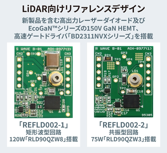 新製品およびロームが開発したEcoGaN™シリーズの150V GaN HEMT、高速ゲートドライバ「BD2311NVXシリーズ」を搭載したLiDAR向けリファレンスデザインをロームWebにて公開しています。