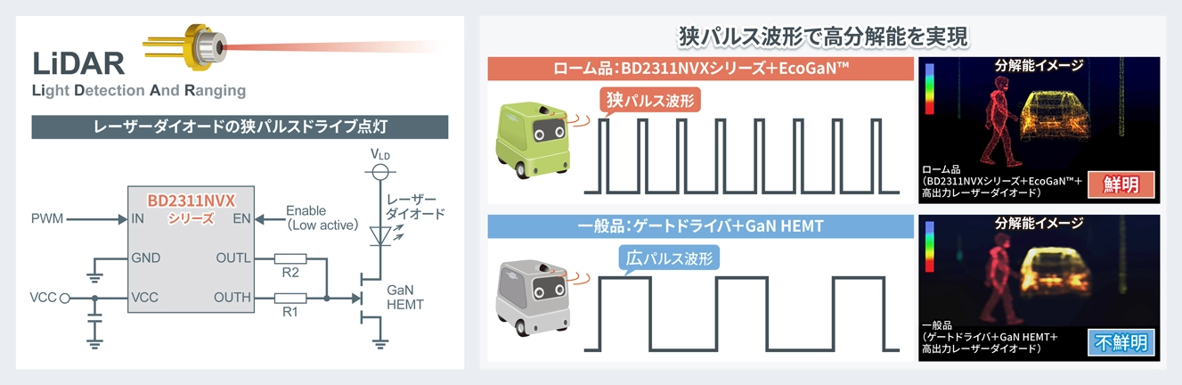 新製品およびロームの150V GaN「EcoGaN™」、高出力レーザーダイオードを搭載したLiDAR向けリファレンスデザインをロームWebにて公開しています。