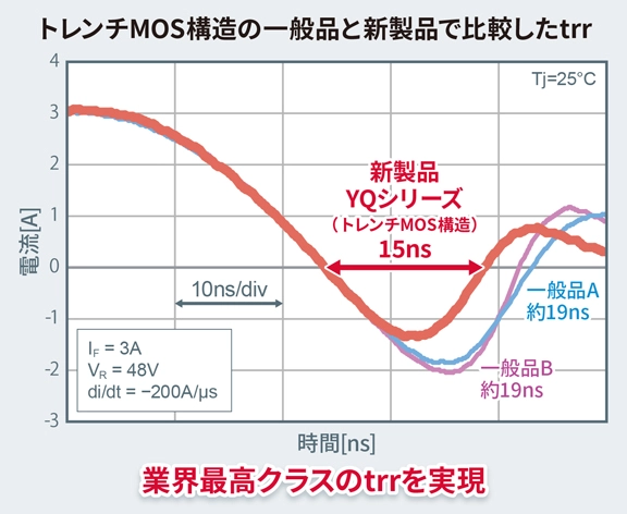 100V耐圧で業界最高クラス※のtrrを実現したSBD「YQシリーズ」を開発