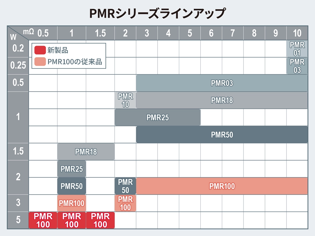 新製品は、1mΩ(PMR100HZP7FV1L00)の抵抗値より販売を開始しています。なお、他抵抗値品は、随時追加予定です。