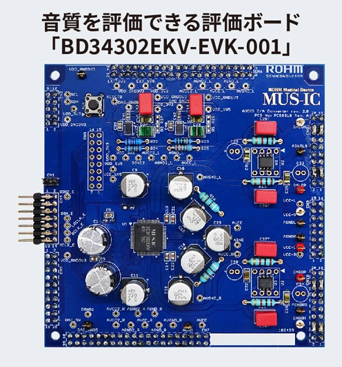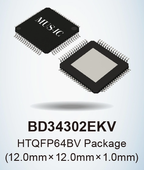 ローム株式会社(本社:京都市)は、ハイレゾリューション音源*1の再生に適したMUS-IC™シリーズのフラッグシップモデル向け32bit D/AコンバータIC(以下、DACチップ※)「BD34302EKV」を開発し、評価ボード「BD34302EKV-EVK-001」と併せて販売を開始しました。
