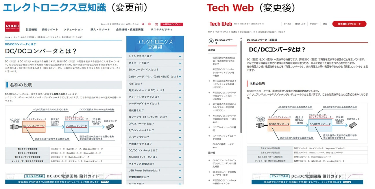これまでは、基礎的な内容の「エレクトロニクス豆知識」と応用的な内容の「Tech Web」が別サイトに分かれて掲載されていました。これらを統合することで、基礎から応用までを一貫して学べる環境が整い、ユーザーにとってより学習しやすいサイトとなりました。