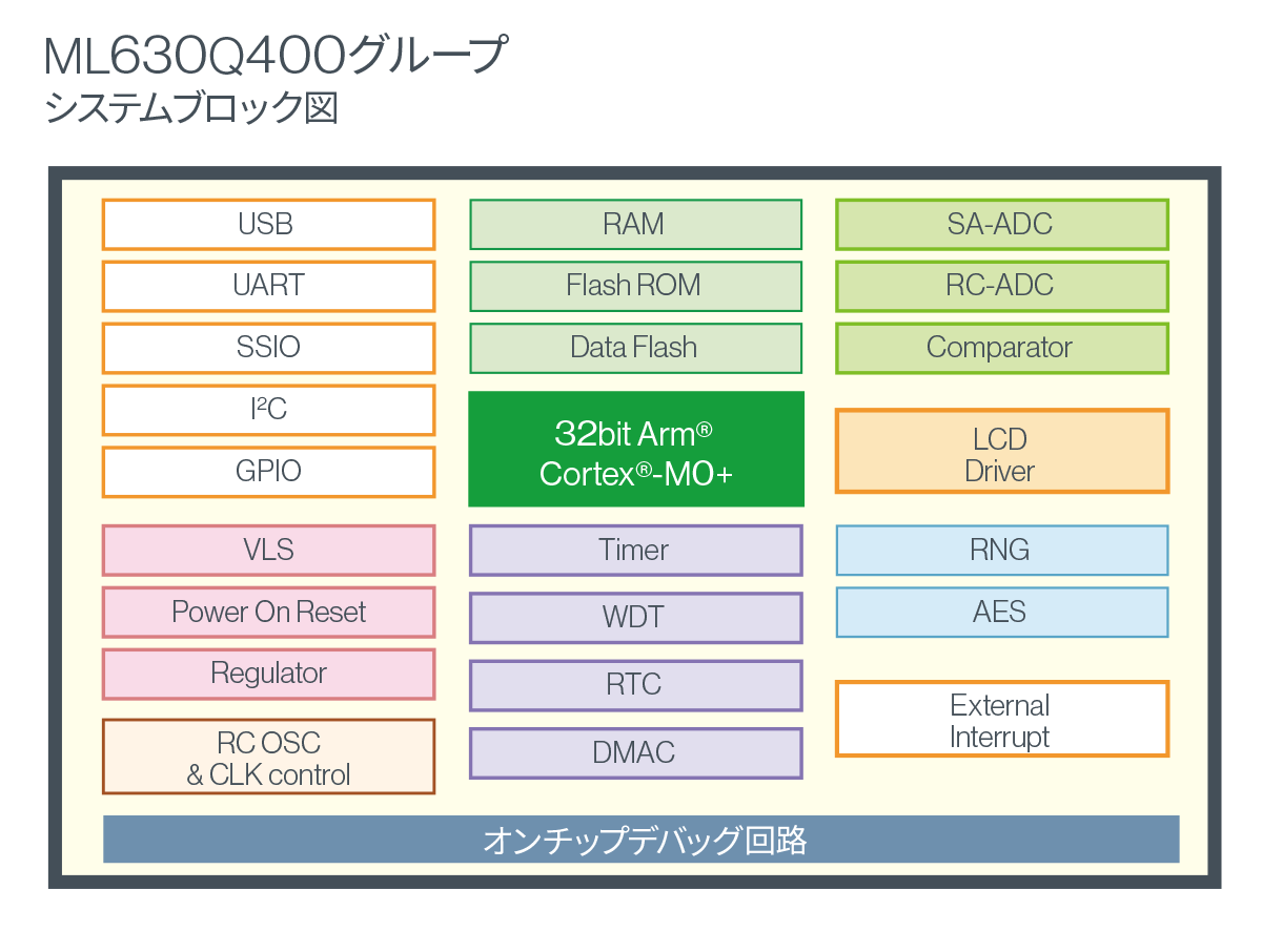 Arm Cortex-M0+を搭載した高性能 32bitマイコン ML630Q400グループは、低消費電力で、かつUSB機能を搭載しているため、USBデータロガーなどに最適です。