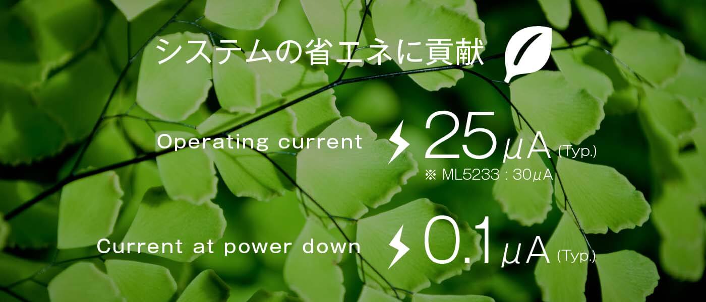 動作時の電流は25µA (Typ.)(ML5233は30µA) と業界最小クラスにしたことで、システムの省エネに貢献します。