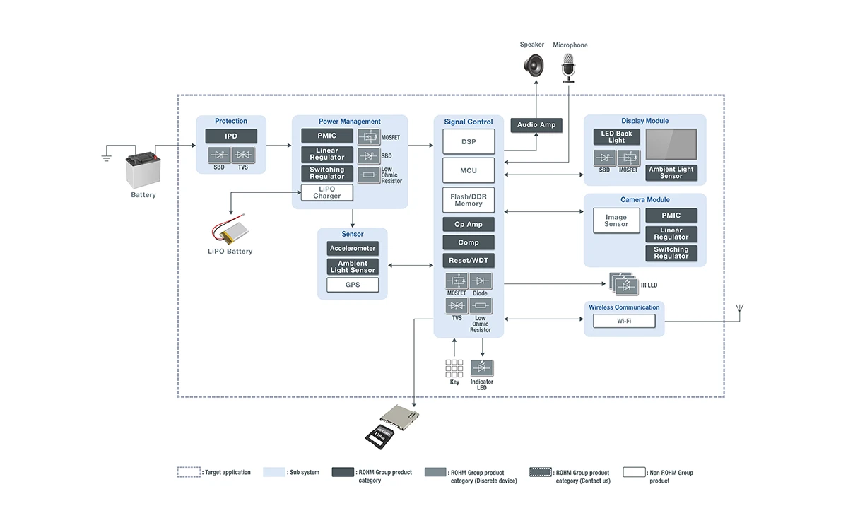 ロームは、Wettable Flankパッケージを採用した超小型小信号デバイス(MOSFET、SBD)をはじめ、小型・高信頼の汎用製品を多数ラインアップしており、安心・安全をもたらす高機能なアプリケーションの実現に貢献しています。